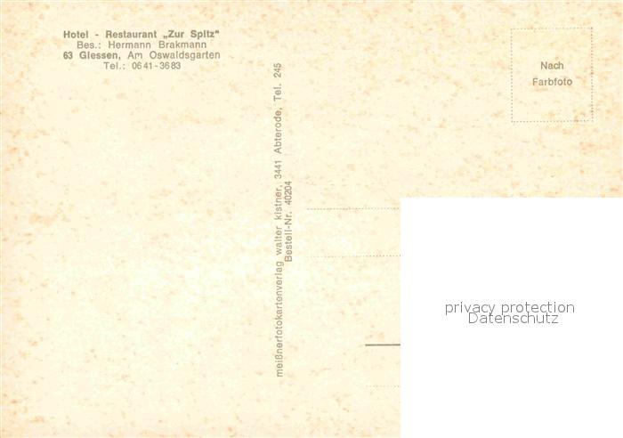 72725110 Giessen Lahn Hotel Restaurant Zur Spitz Gastraeume postalisch nicht gelaufen Erhaltung siehe scans [WerneD78] KatCode: 11110006531005