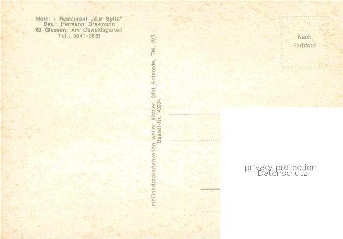72770051 Giessen Lahn Hotel Restaurant Zur Spitz postalisch nicht gelaufen Erhaltung siehe scans [AndreD76] KatCode: 11110006531005