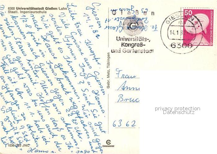 73129384 alte Postkarte Giessen Lahn Ingenieurschule postalisch gelaufen Erhaltung siehe scans [PaolaD17] KatCode: 11110006531005
