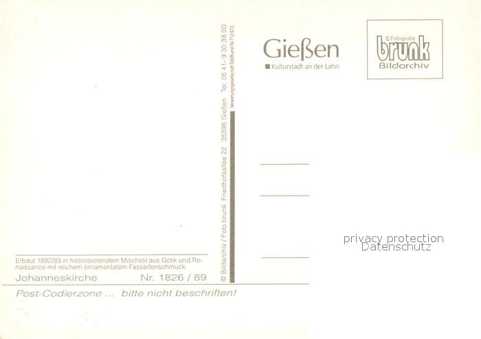 73263750 Giessen Lahn Johannes-Kirche postalisch nicht gelaufen Erhaltung siehe scans [LiesaD40] KatCode: 11110006531005