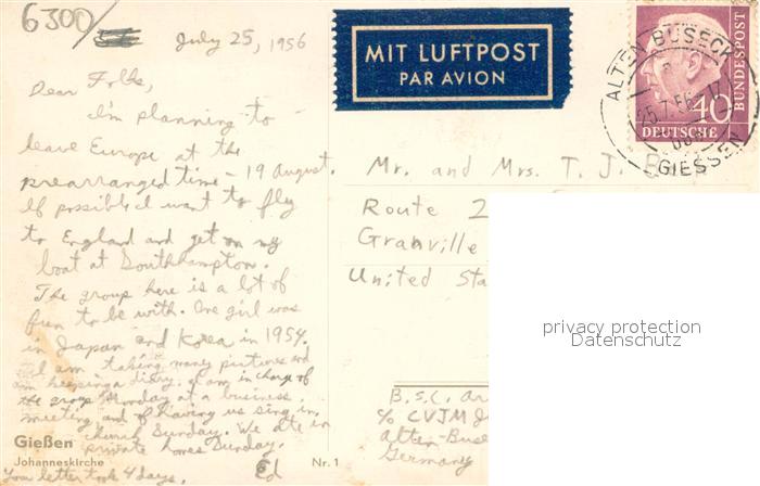 73692981 alte Postkarte Giessen Lahn Johanneskirche postalisch gelaufen Erhaltung siehe scans [WerneD78] KatCode: 11110006531005