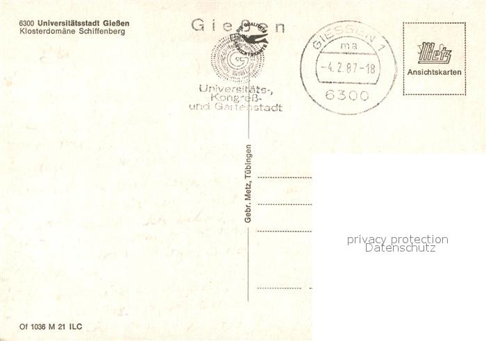73225385 alte Postkarte Giessen Lahn Klosterdomaene Schiffenberg postalisch gelaufen Erhaltung siehe scans [LiesaD40] KatCode: 11110006531005