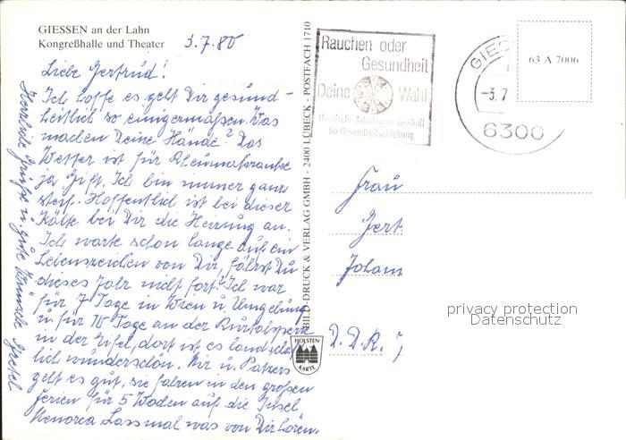 72504940 alte Postkarte Giessen Lahn Kongresshalle Theater postalisch gelaufen Erhaltung siehe scans KatCode: 11110006531005