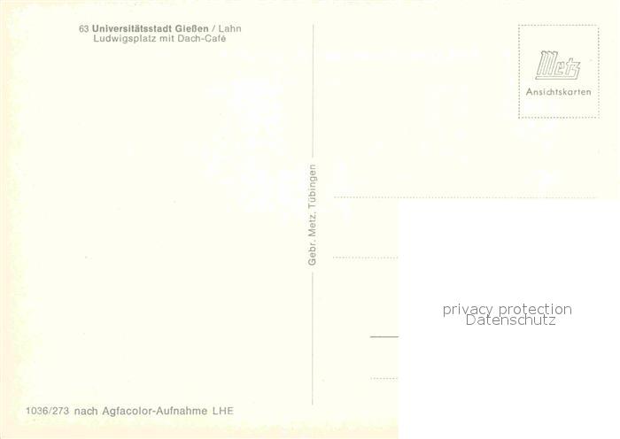 72859806 Giessen Lahn Ludwigsplatz Dach-Cafe postalisch nicht gelaufen Erhaltung siehe scans [NatalD47] KatCode: 11110006531005