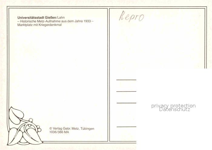 72769913 Giessen Lahn Marktplatz mit Kriegerdenkmal postalisch nicht gelaufen Reprokarte (modern) Erhaltung siehe scans [AndreD76] KatCode: 11110006531005