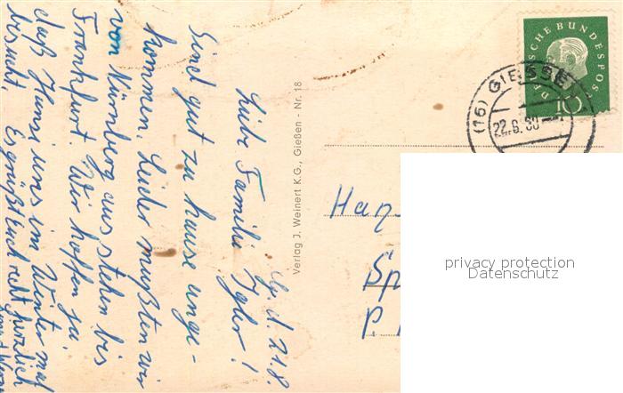 73205660 alte Postkarte Giessen Lahn Neues Schloss Johanneskirche Justus Liebig Hochschule postalisch gelaufen Erhaltung siehe scans [NatalD47] KatCode: 11110006531005