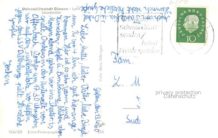 43362451 alte Postkarte Giessen Lahn Postgebaeude Schulstrasse postalisch gelaufen Erhaltung siehe scans [WerneD78] KatCode: 11110006531005