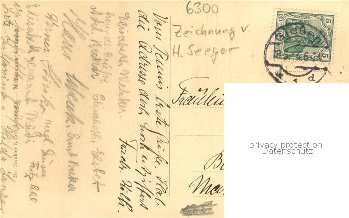 73731044 alte Postkarte Giessen Lahn Rathaus Zeichnung postalisch gelaufen Erhaltung siehe scans [WerneD78] KatCode: 11110006531005