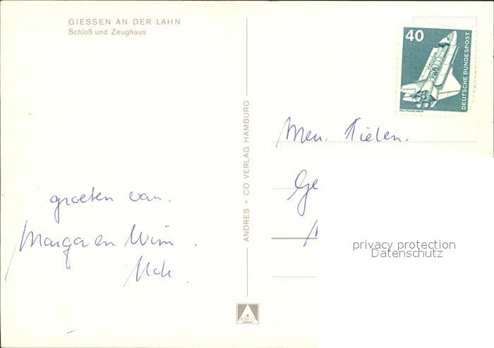 72378721 alte Postkarte Giessen Lahn Schloss und Zeughaus postalisch gelaufen Erhaltung siehe scans KatCode: 11110006531005