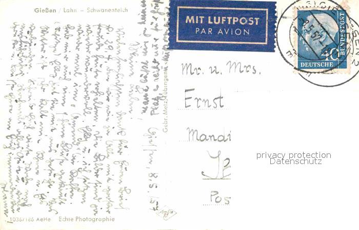72850709 alte Postkarte Giessen Lahn Schwanenteich postalisch gelaufen Erhaltung siehe scans [FriedD77] KatCode: 11110006531005