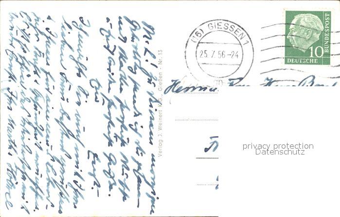 72058307 alte Postkarte Giessen Lahn Schwanenteich und Hochhaeuser postalisch gelaufen Erhaltung siehe scans KatCode: 11110006531005