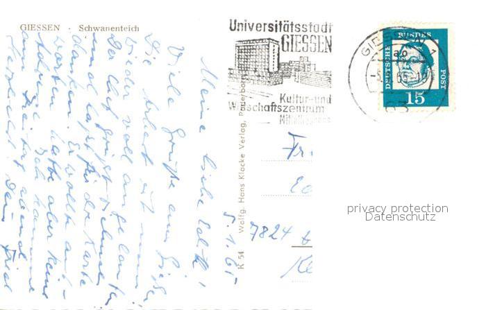 73160055 alte Postkarte Giessen Lahn Schwanenteich postalisch gelaufen Erhaltung siehe scans [LiesaD40] KatCode: 11110006531005