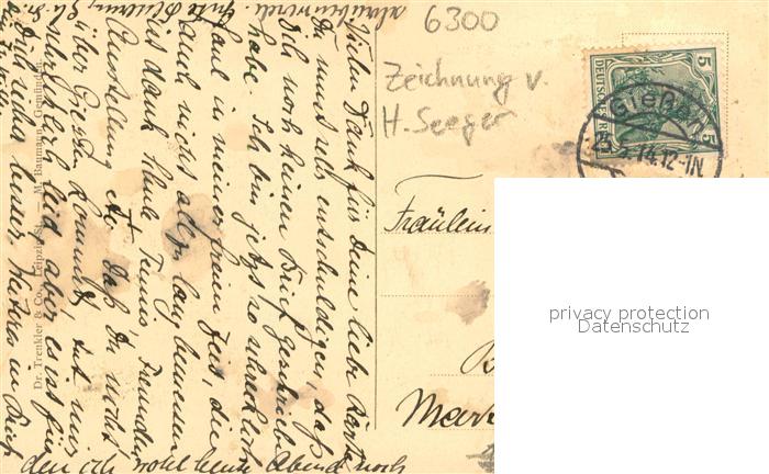73731043 alte Postkarte Giessen Lahn Stadtkirche Zeichnung postalisch gelaufen Erhaltung siehe scans [WerneD78] KatCode: 11110006531005