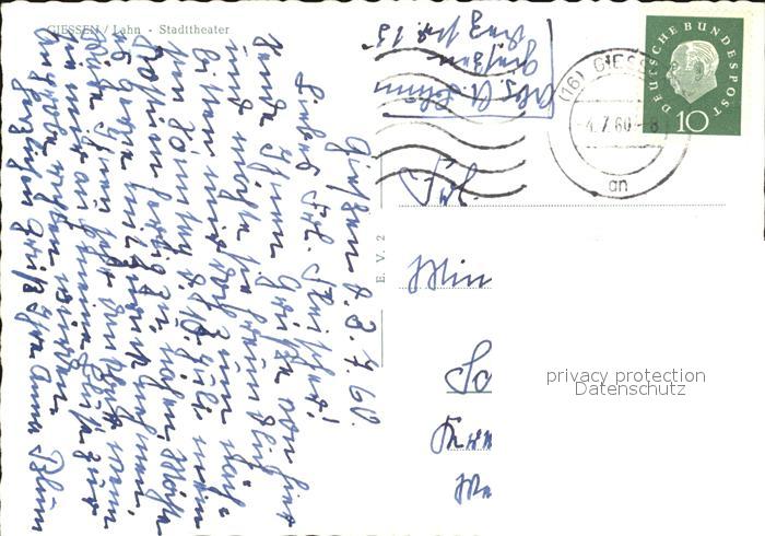 72593765 alte Postkarte Giessen Lahn Stadttheater postalisch gelaufen Erhaltung siehe scans [WerneD78] KatCode: 11110006531005