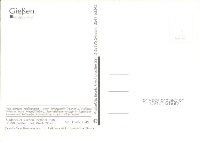 72447571 Giessen Lahn Stadttheater postalisch nicht gelaufen Erhaltung siehe scans KatCode: 11110006531005