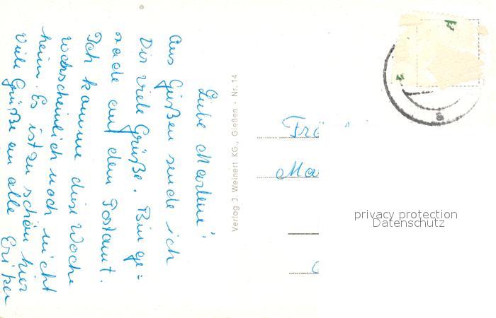 73079965 alte Postkarte Giessen Lahn Theater Universitaet Kreuzplatz Ludwigsplatz Burg postalisch gelaufen Erhaltung siehe scans [LiesaD40] KatCode: 11110006531005