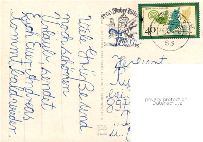 73276914 alte Postkarte Giessen Lahn Universitaetsstadt Theater Zeughaus Roentgen-Denkmal postalisch gelaufen Erhaltung siehe scans [LiesaD40] KatCode: 11110006531005