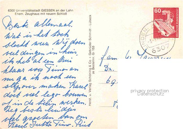 72655088 alte Postkarte Giessen Lahn Universitaetsstadt Zeughaus mit neuem Schloss postalisch gelaufen Erhaltung siehe scans [LiesaD40] KatCode: 11110006531005