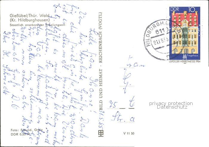 72058459 alte Postkarte Giessuebel Schleusegrund Dorfpartie postalisch gelaufen Erhaltung siehe scans KatCode: 11110016069042