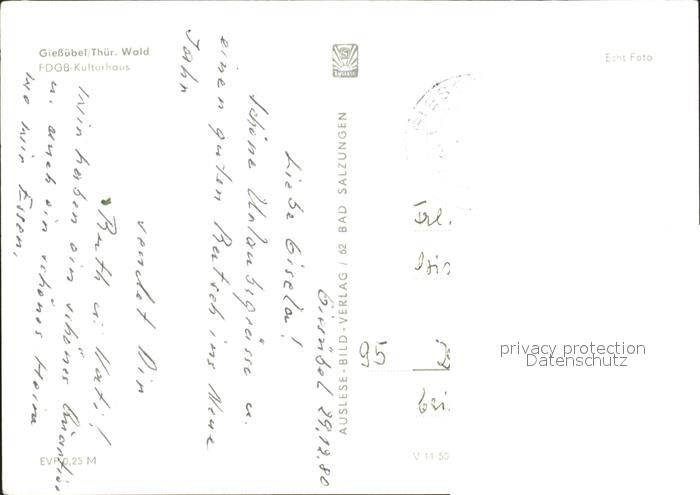 72117564 Giessuebel Schleusegrund FDGB Kulturhaus postalisch nicht gelaufen Erhaltung siehe scans KatCode: 11110016069042