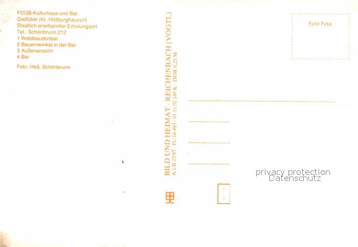 72704273 Giessuebel Schleusegrund FDGB Kulturhaus Waldbaudenbar Bauernwinkel Aussenansicht Gaststube postalisch nicht gelaufen Erhaltung siehe scans [FriedD77] KatCode: 11110016069042