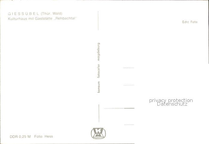Giessuebel Schleusegrund Kulturhaus mit Restaurant Rehbachtal postalisch nicht gelaufen Erhaltung siehe scans