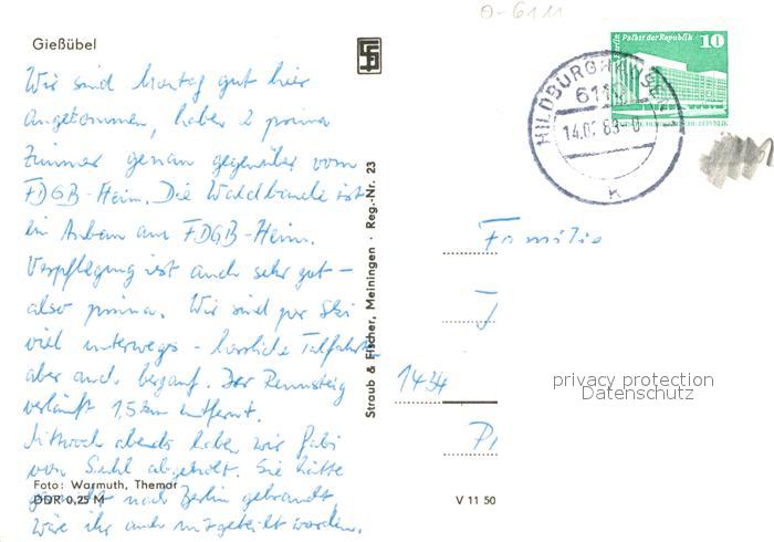 72928547 alte Postkarte Giessuebel Schleusegrund Walbaude Teilansichten Schwimmbad postalisch gelaufen Erhaltung siehe scans [WerneD78] KatCode: 11110016069042
