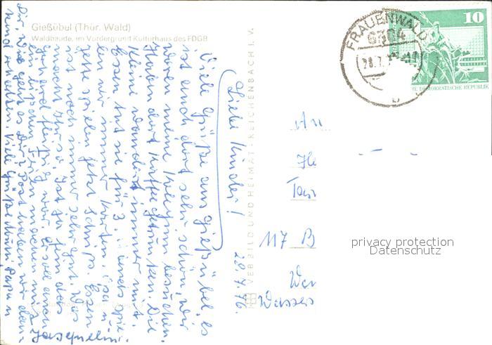 72273346 alte Postkarte Giessuebel Schleusegrund Waldbaude mit Kulturhaus des FDGB postalisch gelaufen Erhaltung siehe scans KatCode: 11110016069042
