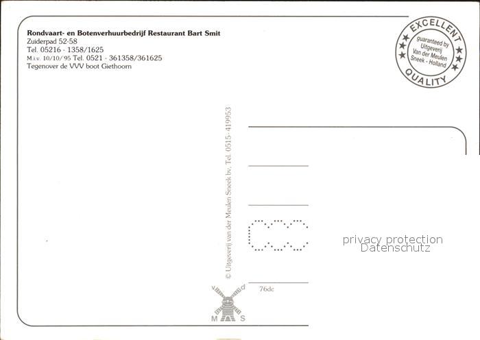 Giethoorn Cafe Restaurant Bootsverleih Ruderbedarf Fam Smit postalisch nicht gelaufen Erhaltung siehe scans [AndreD76 kv022box]