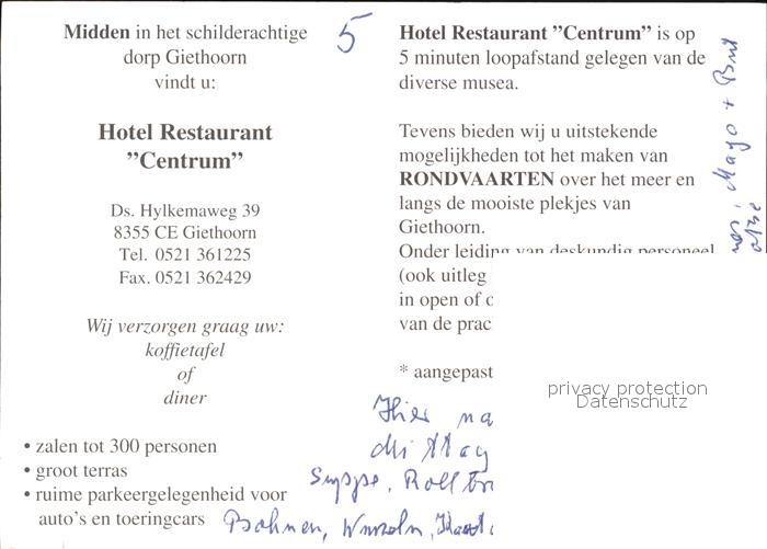 Giethoorn Hotel Cafe Restaurant Centrum postalisch nicht gelaufen Keine Postkarte (siehe scan) Erhaltung siehe scans [AntonD74]