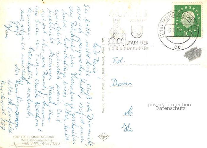 73282293 alte Postkarte Gievenbeck Haus Mariengrund postalisch gelaufen Erhaltung siehe scans [LiesaD40] KatCode: 11110005515000