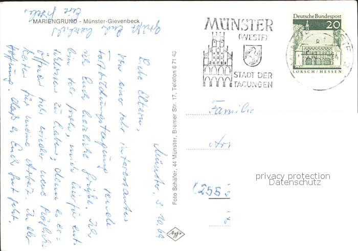 alte Postkarte Gievenbeck Mariengrund postalisch gelaufen Erhaltung siehe scans