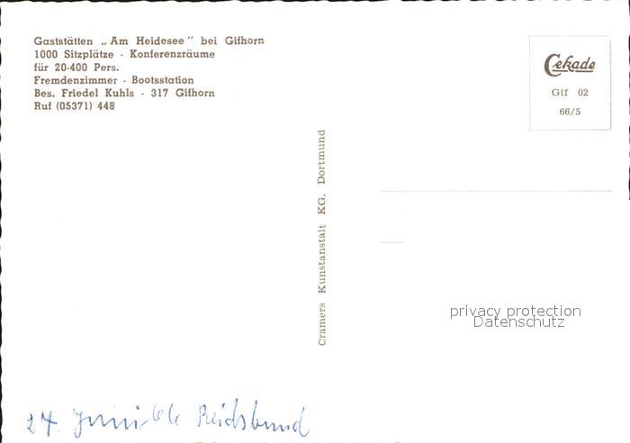 72426946 Gifhorn Gaststaetten Am Heidesee Ruderboot postalisch nicht gelaufen Erhaltung siehe scans KatCode: 11110003151009