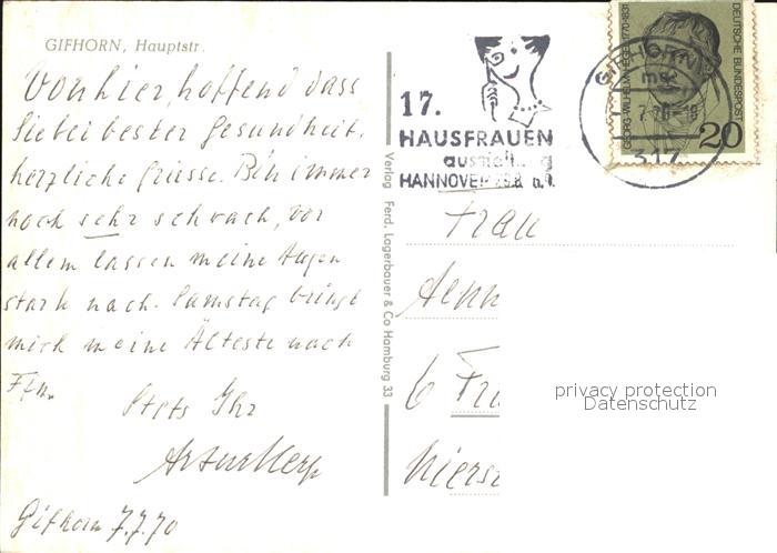 72549828 alte Postkarte Gifhorn Hauptstrasse postalisch gelaufen Erhaltung siehe scans [AndreD76] KatCode: 11110003151009