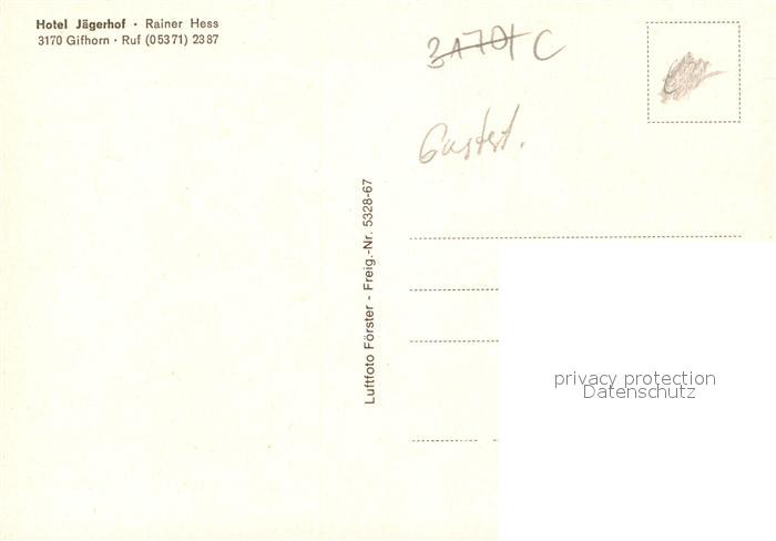 73165585 Gifhorn Hotel Jaegerhof Fliegeraufnahme postalisch nicht gelaufen Erhaltung siehe scans [WerneD78] KatCode: 11110003151009