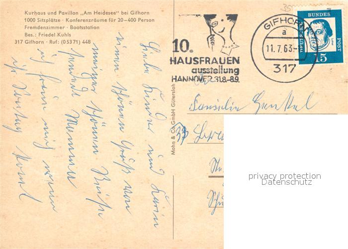 73134327 alte Postkarte Gifhorn Kurhaus Am Heidesee postalisch gelaufen Erhaltung siehe scans [NatalD47] KatCode: 11110003151009