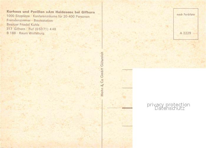 72693874 Gifhorn Kurhaus Pavillon Am Heidesee postalisch nicht gelaufen Erhaltung siehe scans [NatalD47] KatCode: 11110003151009