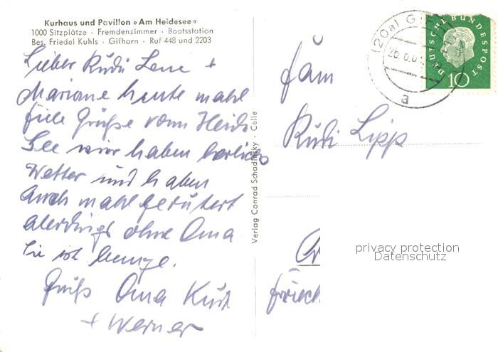 73132358 alte Postkarte Gifhorn Kurhaus Pavillon Gartenrestaurant Am Heidesee postalisch gelaufen Erhaltung siehe scans [FriedD77] KatCode: 11110003151009