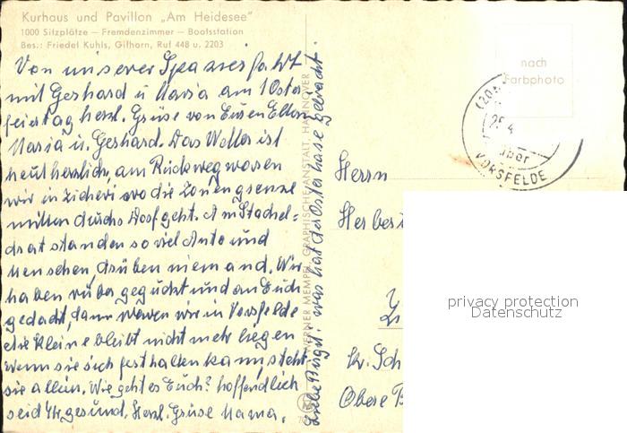72406848 alte Postkarte Gifhorn Kurhaus Pavillon Gaststaette Am Heidesee postalisch gelaufen Erhaltung siehe scans KatCode: 11110003151009