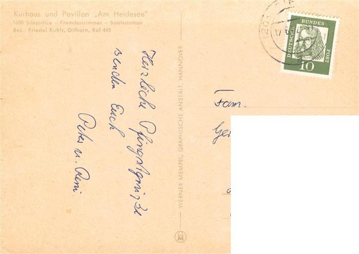 73878392 alte Postkarte Gifhorn Kurhaus und Pavillon Am Heidesee Freiterrasse postalisch gelaufen Erhaltung siehe scans [WerneD78] KatCode: 11110003151009