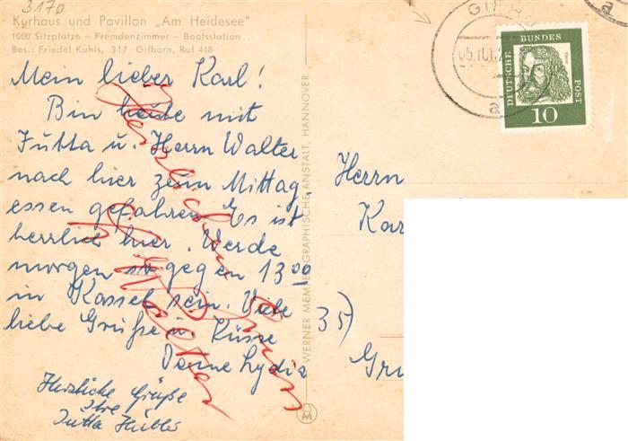 73883570 alte Postkarte Gifhorn Kurhaus und Pavillon Am Heidesee postalisch gelaufen Erhaltung siehe scans [WerneD78] KatCode: 11110003151009