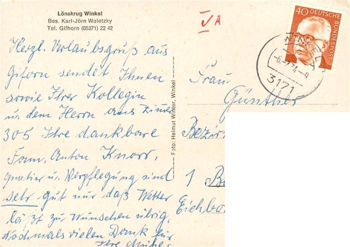 73886906 alte Postkarte Gifhorn Loenskrug Winkel postalisch gelaufen Erhaltung siehe scans [WerneD78] KatCode: 11110003151009