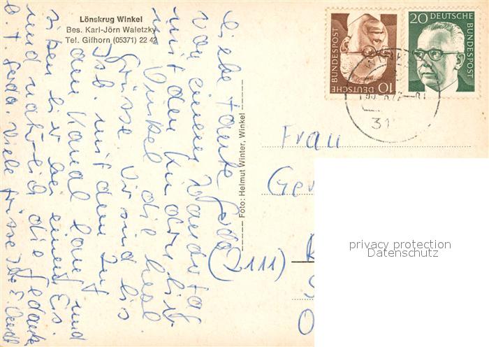 73052079 alte Postkarte Gifhorn Loenskrug Winkel postalisch gelaufen Erhaltung siehe scans [NatalD47] KatCode: 11110003151009