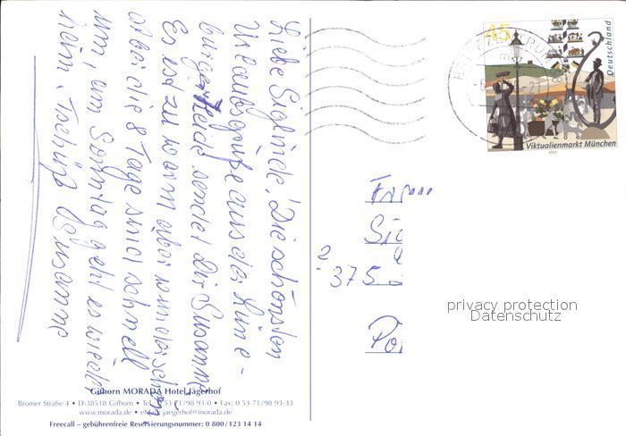 72532593 alte Postkarte Gifhorn Morada Hotel Jaegerhof Gastraum Terrasse Schaefer mit Herde postalisch gelaufen Erhaltung siehe scans [WerneD78 kt116box] KatCode: 11110003151009