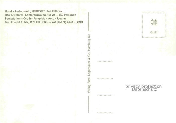 74136922 Gifhorn Niedersachsen Hotel Restaurant Heidesee Spazierweg Bootsliegeplatz Bootspartie postalisch nicht gelaufen Erhaltung siehe scans [WerneD78] KatCode: 11110003151009