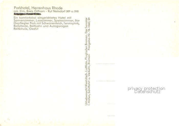 73648003 Gifhorn Parkhotel Herrenhaus Rhode am Elm Fliegeraufnahme postalisch nicht gelaufen Erhaltung siehe scans [WerneD78] KatCode: 11110003151009