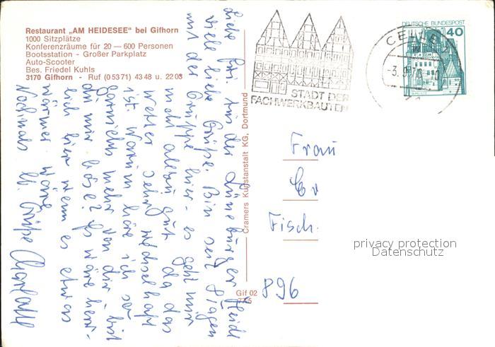 72421122 alte Postkarte Gifhorn Restaurant am Heidsee postalisch gelaufen Erhaltung siehe scans KatCode: 11110003151009