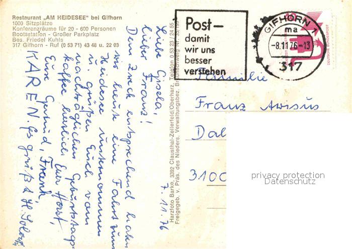 72684276 alte Postkarte Gifhorn Restaurant am Heidsee Fliegeraufnahme postalisch gelaufen Erhaltung siehe scans [WerneD78] KatCode: 11110003151009