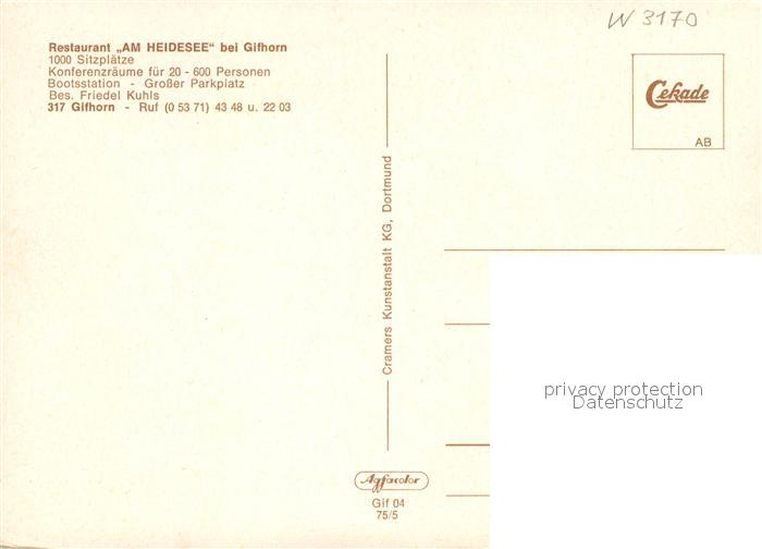 72936343 Gifhorn Restaurant Am Heidsee postalisch nicht gelaufen Erhaltung siehe scans [WerneD78] KatCode: 11110003151009