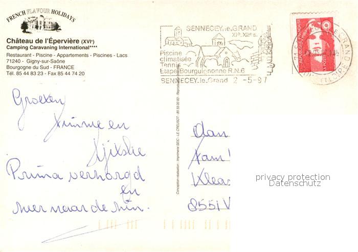 13516877 carte postale Gigny-sur-Saone Camping du Chateau de l Eperviere postalisch gelaufen Erhaltung siehe scans [KathaD81] KatCode: 11170071271219